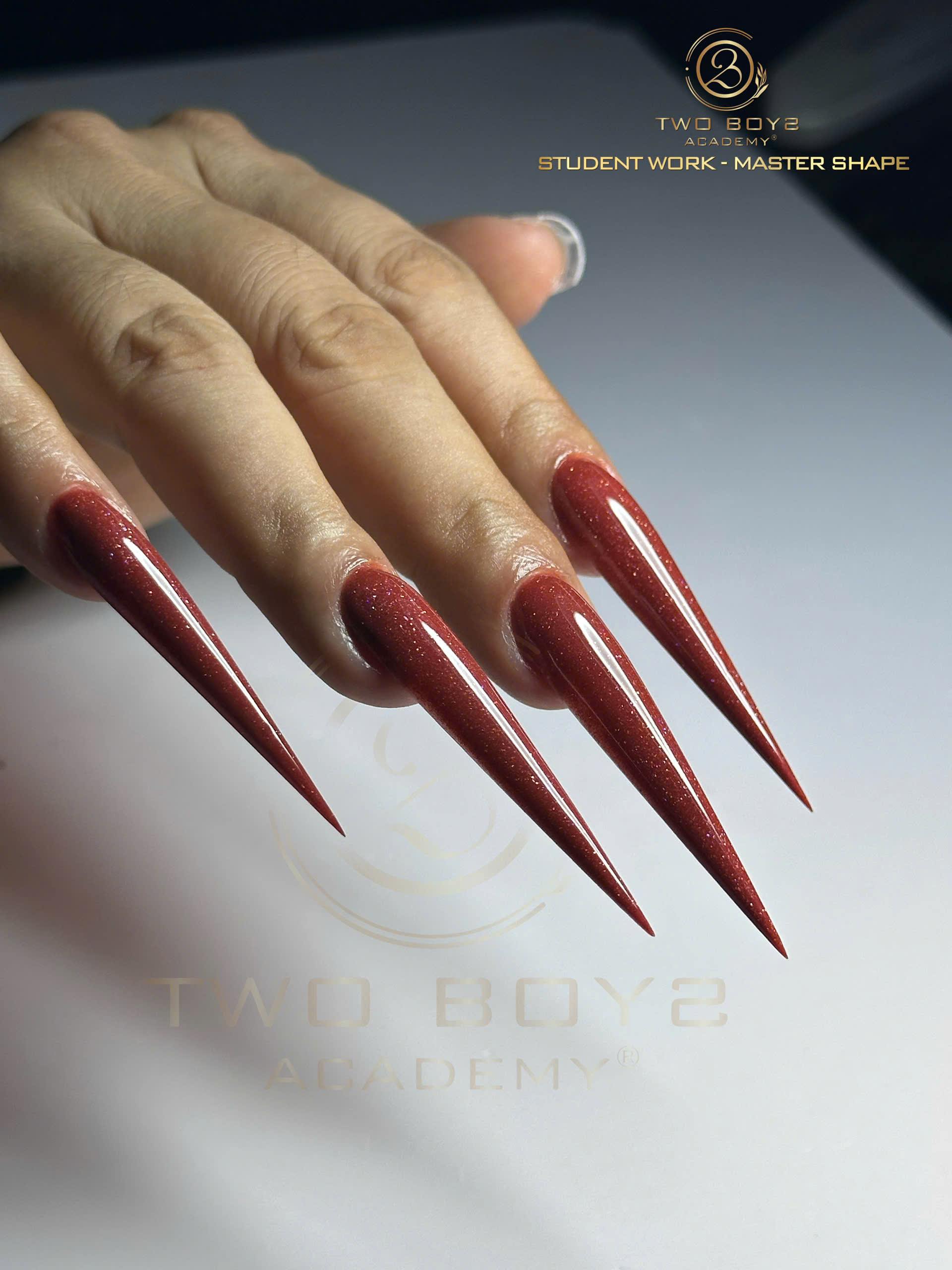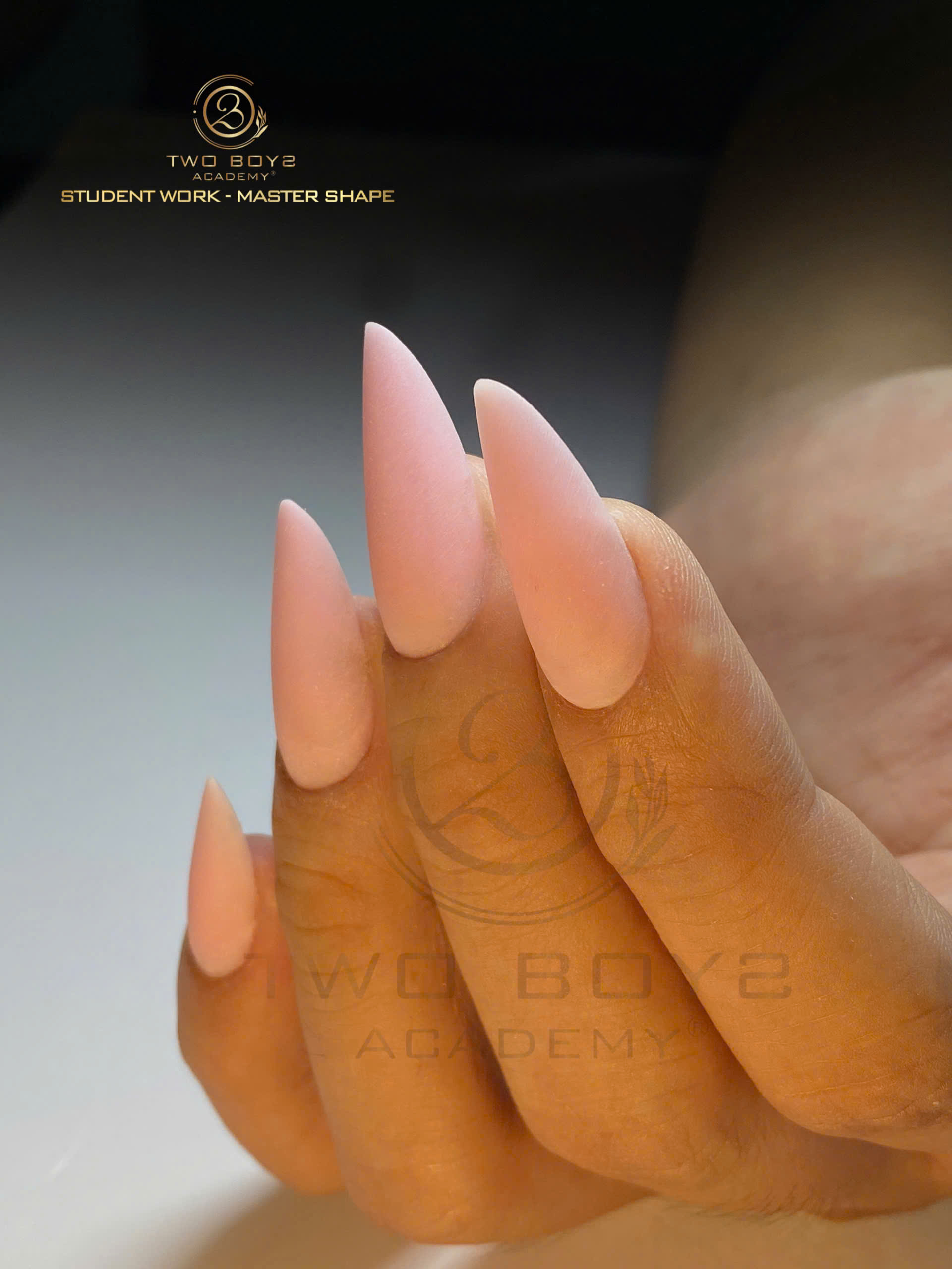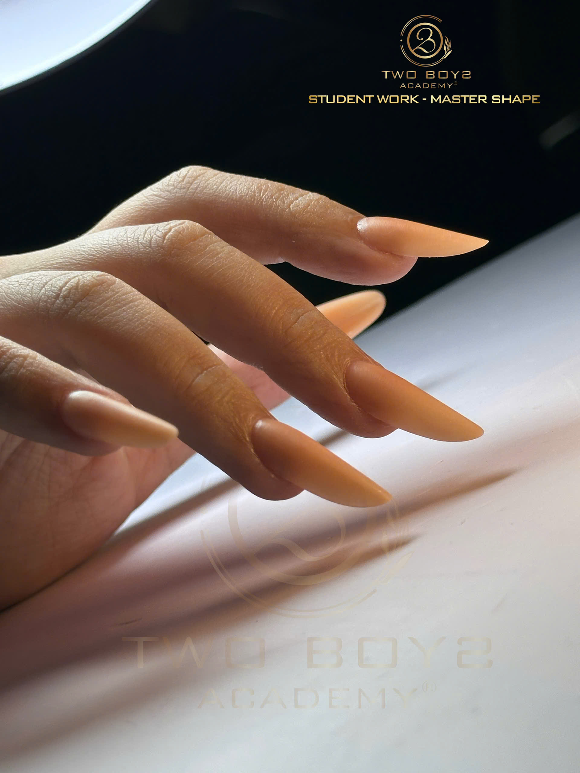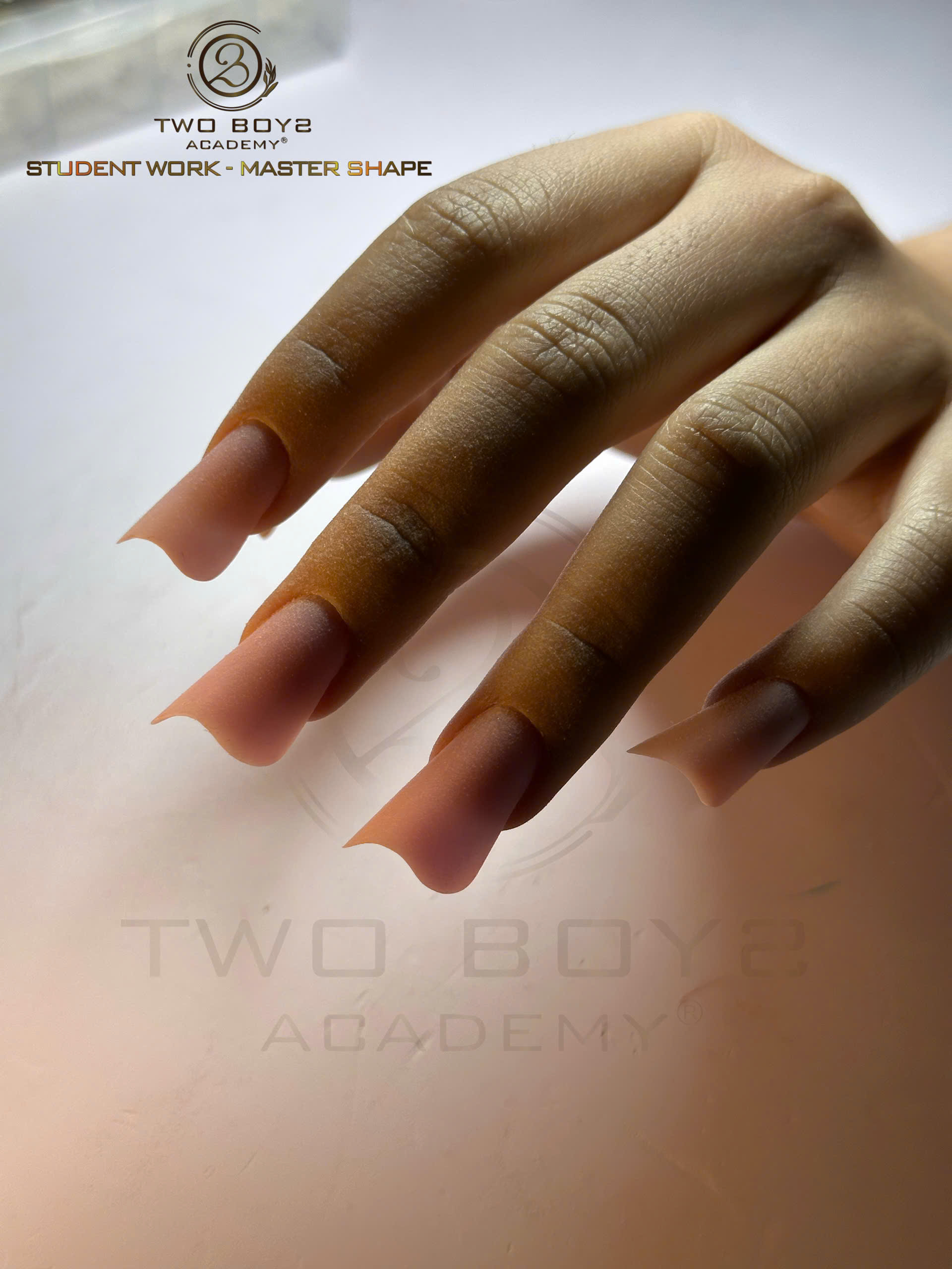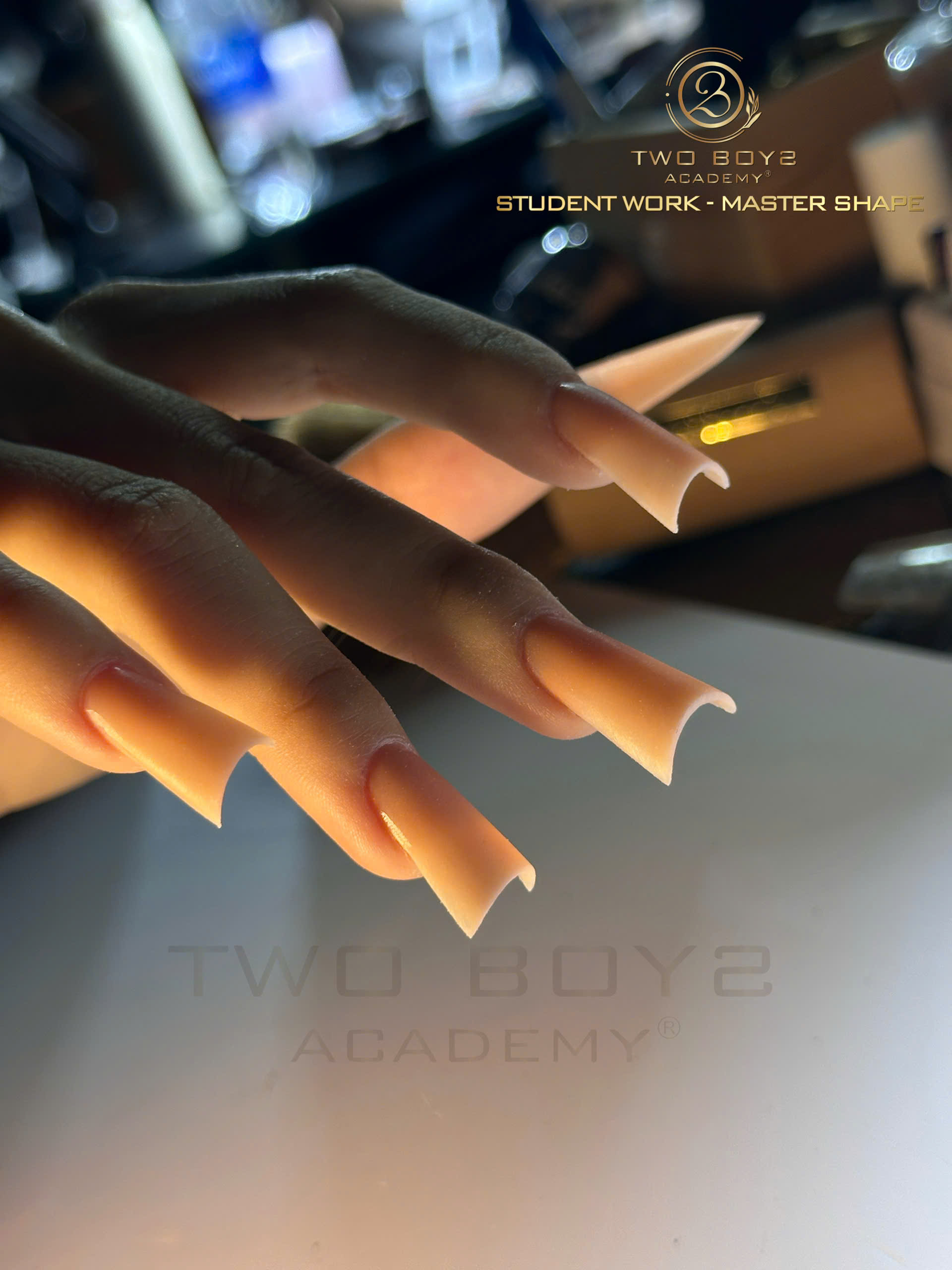 - Thực hành các shape móng từ dễ đến khó trên tay thật: square, coffin, oval, almond, stiletto, ballerina… và các shape quốc tế nâng cao như Russian almond, duck, roof…