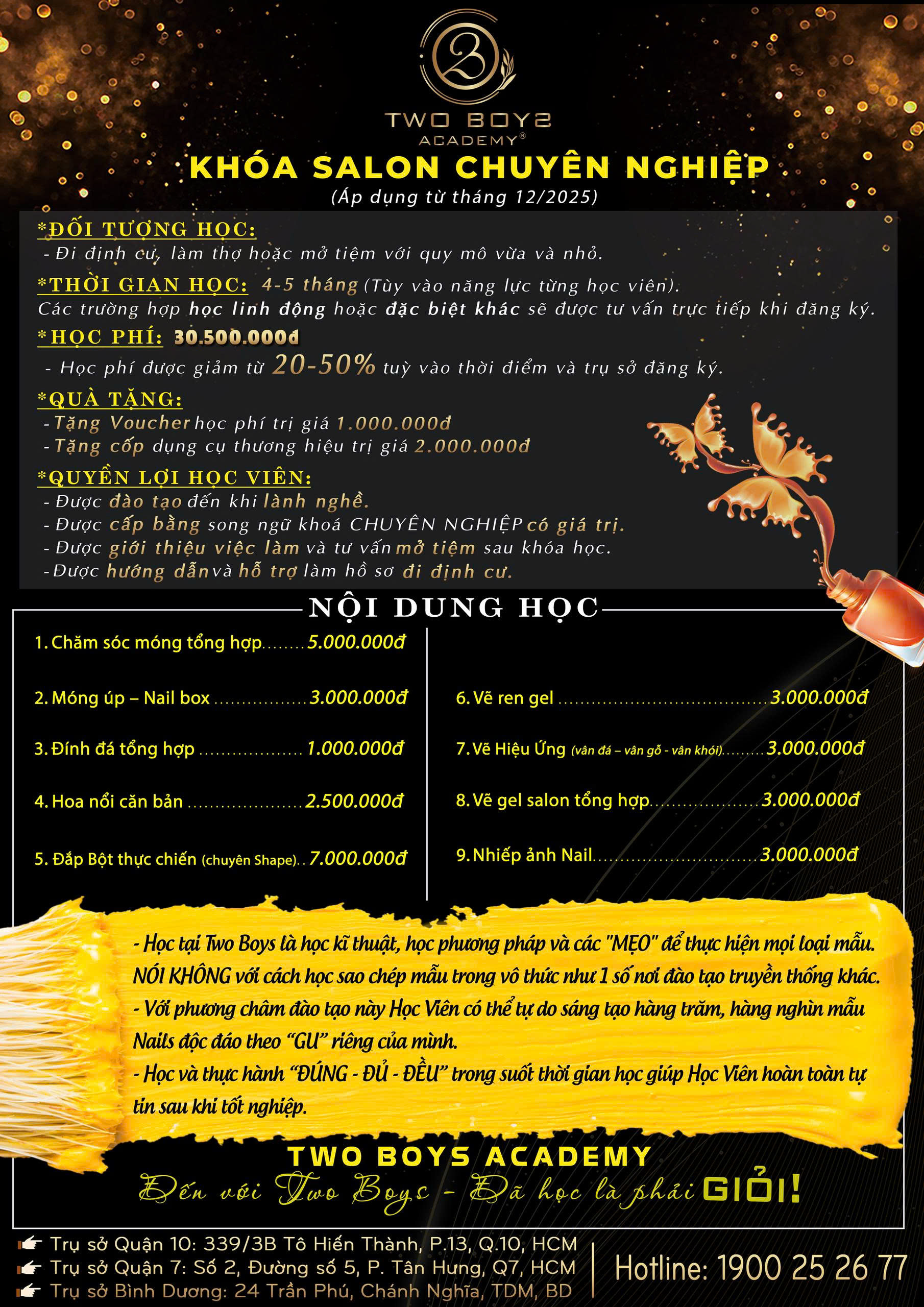 - Phù hợp cho người đi làm, giảng viên, đi định cư, mở salon hoặc trung tâm đào tạo với quy mô chuyên nghiệp